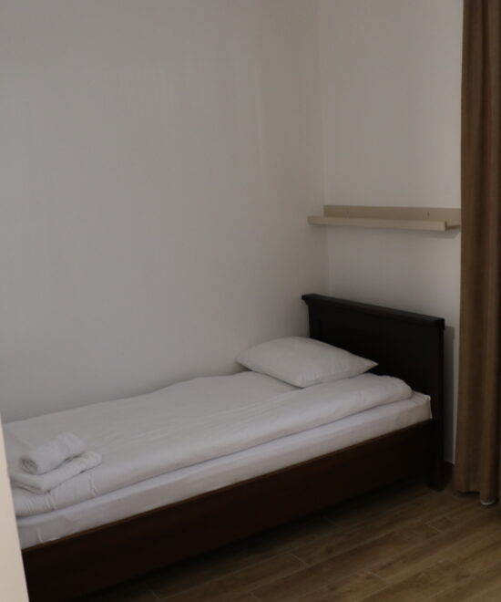Једнокреветна соба у нашем конаку осмишљена је тако да госту пружи потпуни мир, удобност и духовни одмор. Опремљена квалитетним креветом, уређена у традиционалном стилу и обасјана природним светлом, соба представља савршено место за повлачење после молитве, шетње или боравка у манастирском окружењу. У чистој и уредној атмосфери, гости могу уживати у тишини, као и у погледу на природу која додатно појачава осећај спокоја.